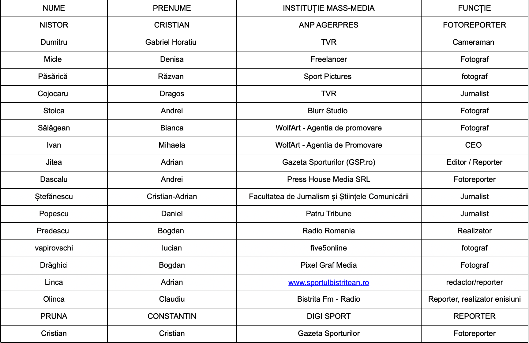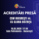 Lista reprezentanților presei scrise și fotografilor acreditați pentru partida CSM București vs. CS Gloria Bistrița – 16 martie, Sala Polivalentă, ora 17:30.