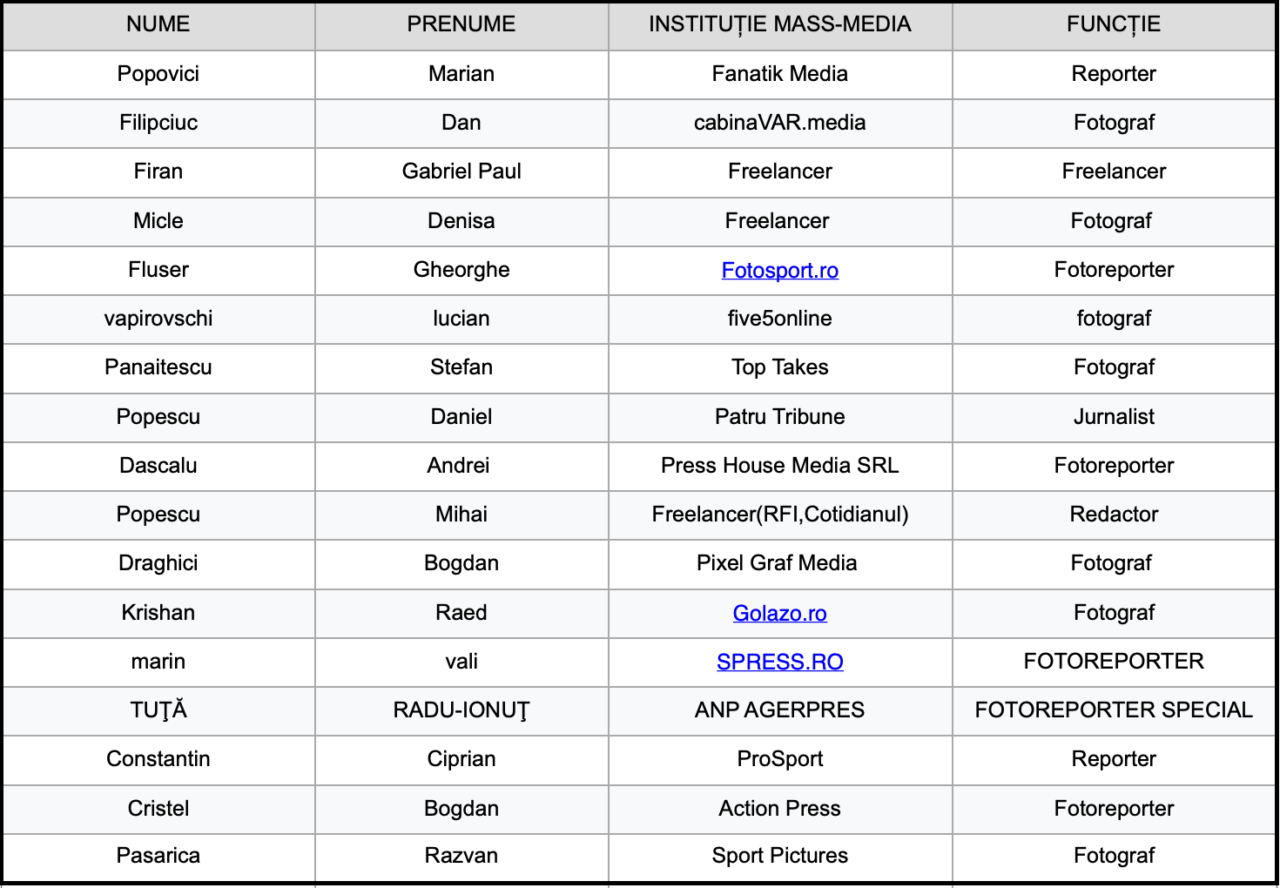 *Atât badge-urile, cât și vestele vor fi ridicate în ziua meciului, de la intrarea presei în Sala Polivalentă, de lângă carul TV.